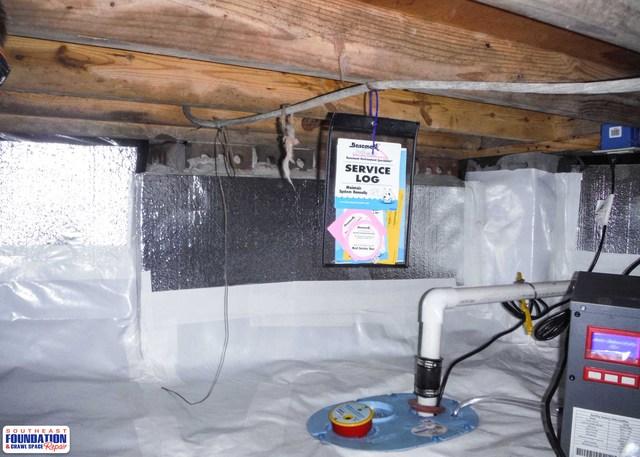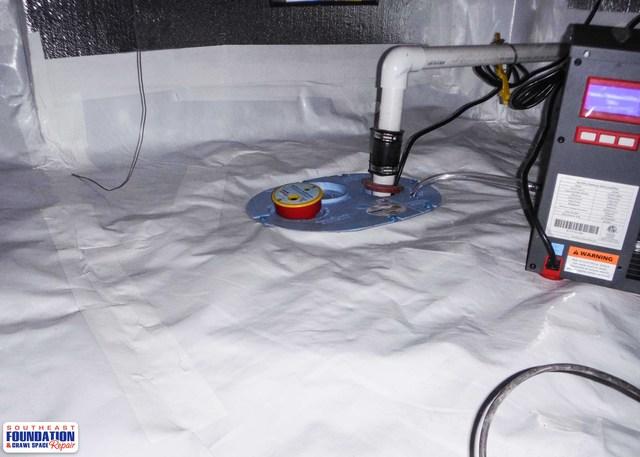 The SmartSump System keeps the crawl space dry by pumping out any water that may enter or water vapor to the yard away from the crawl space.