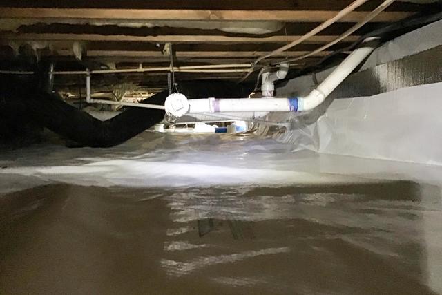 The CleanSpace Encapsulation System provides coverage against water vapor from entering the crawl space of the home.